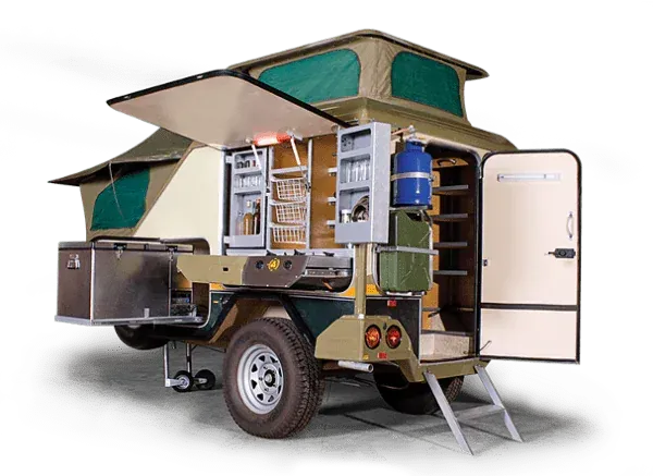 Light and tough. Easy to tow, quick to set up, and plenty of space for your gear.