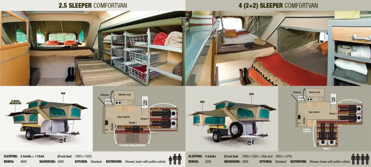 The Comfortvan sits in the middle of the Imagine range, striking the perfect balance between rugged off-road ability and homely comfort. Designed for couples or small families, it offers more space than the Trailvan while still being light and easy to tow.